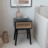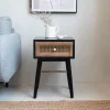 This simple nightstand effortlessly blends fashion and function, bringing a modern chic aesthetic to any living space. Smooth table top and teng strip design is very unique. The matching drawer has extra capacity to store any of your belongings, and the small table features a shelf for organizing and storing books, snacks, blankets and other odds and ends. With a flexible nested design that allows each unit to be used together or alone, this unique nightstand is versatile and unique, making it the perfect finishing touch for your home.