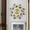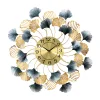 Metal wall clock with ginkgo leaves, which are a symbol of harmony. Crafted of iron and painted by hand, it has a golden circular clock face with black pointers. It is not only a decoration for your wall but also functions as a clock. Therefore, it is a perfect blend of style and functionality.