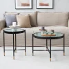 Simple and modern coffee table, round glass table top hazy and beautiful, rounded edges to avoid unnecessary bump and collision, safer for children at home. x-frame support more solid, not easy to shake. mdf environmental protection board frame, strong bearing capacity, not easy to be insects, easy to clean. Suitable for apartments, small homes, courtyards, living rooms, and other places you need. Coffee cups, potted plants, books can be placed, so that the whole space looks different, choose it will make you like it.