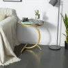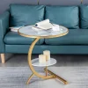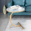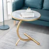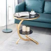 Nordic style light luxury iron coffee table, modern and simple C-shaped bedroom living room sofa corner table, balcony small round table.