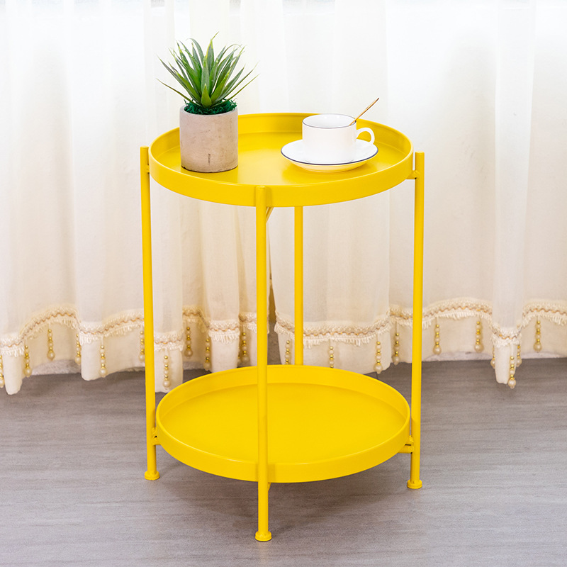 Nordic wrought iron double-layer coffee table, sofa bedside table in living room, small round table in bedroom bed and breakfast coffee table.
