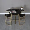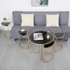 Nordic wrought iron glass coffee table, movable small round table in the living room and bedroom balcony, light luxury and simple furniture tea table.